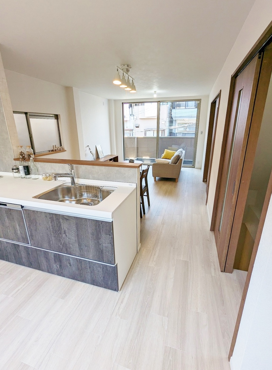 内装(壁や床もすべて新装)や設備はすべて新品・もちろんシステムキッチンも新調